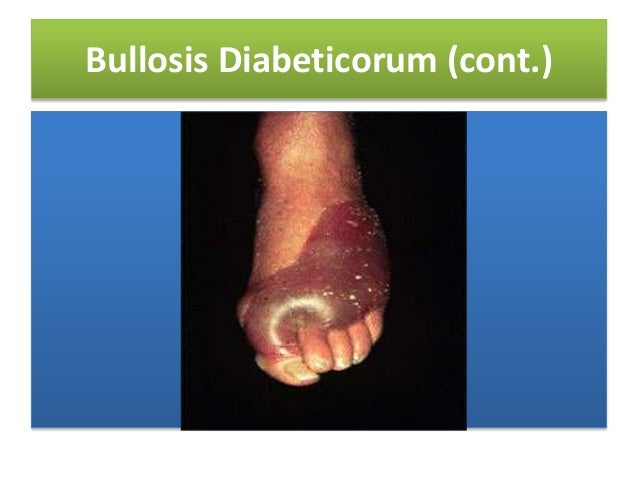 Specific treatment of bullous disease of diabetes bullosis diabeticorum is unnecessary because the condition is self-limiting. Diabetic blisters are also called bullosis diabeticorum or diabetic bullae. Incidence of bullosis diabeticorum a controversial cause of chronic foot ulceration.