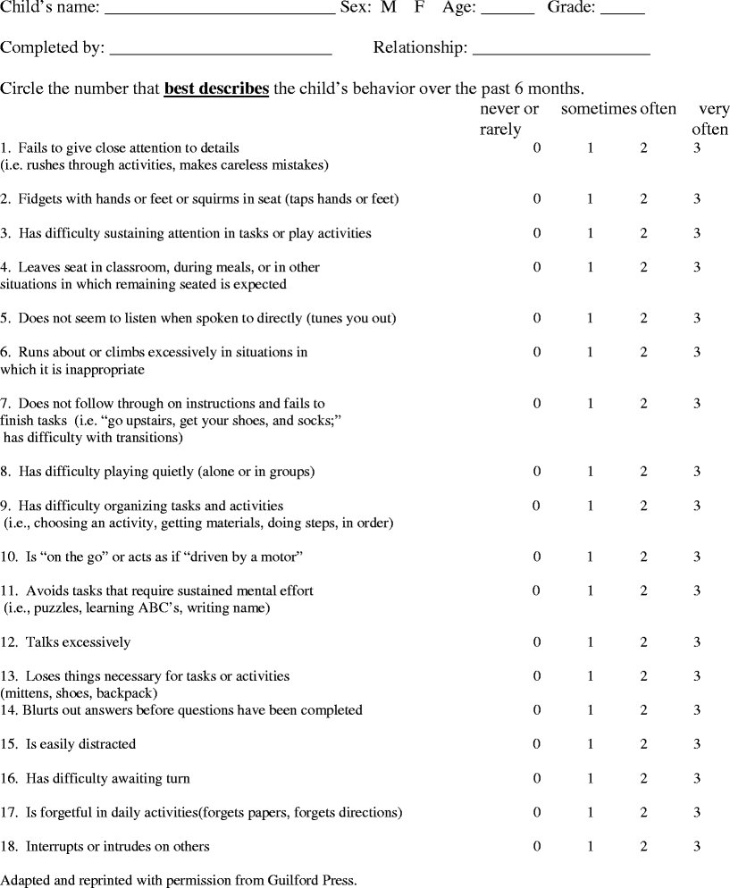 Checklists norms and clinical interpretation. Rating forms for adults include the. Common ADHD rating scales for children include the.
